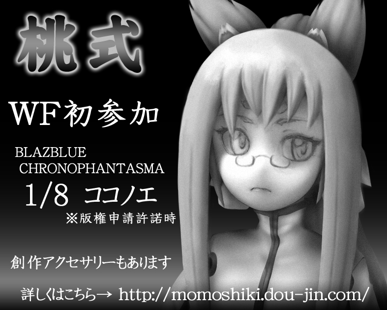 ディーラー名:桃式 卓番号:4-03-22 にて1/8ココノエを販売予定です。 原型完成手前の状態の写真を掲載。 仮止めテープの状態なので見た目がわかりにくくてすみません。 PR |
